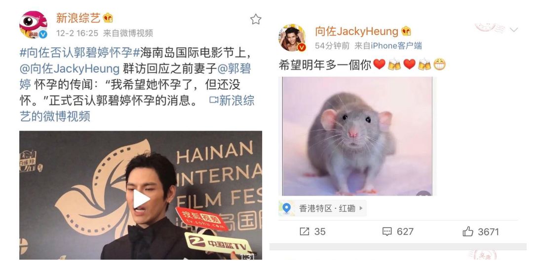 最近,向佐在海南国际电影节上否认郭碧婷怀孕。可同一天他却发出一条鼠宝宝的内容,到底怀没怀?不出意外又引发了一波讨论。