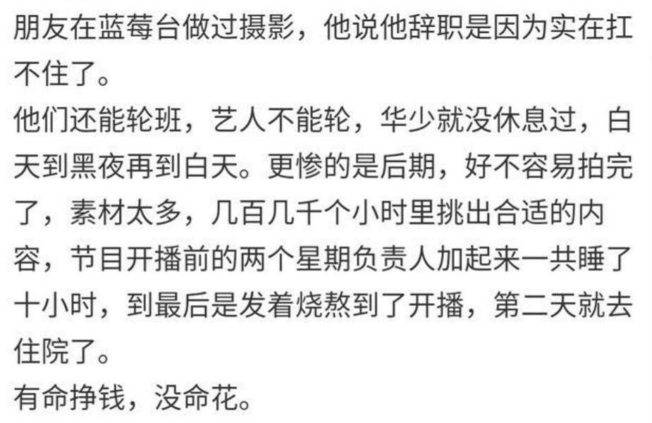 看了华少这样的发声之后,一句“离开并不是我选择的方法”,也是印证了此前网上传出《追我吧》节目组相关人员受到惩罚一事,想来作为主持人的华少也是难逃“开除”吧,不然华少就不会称“离开并不是自己选择的方法”了。
