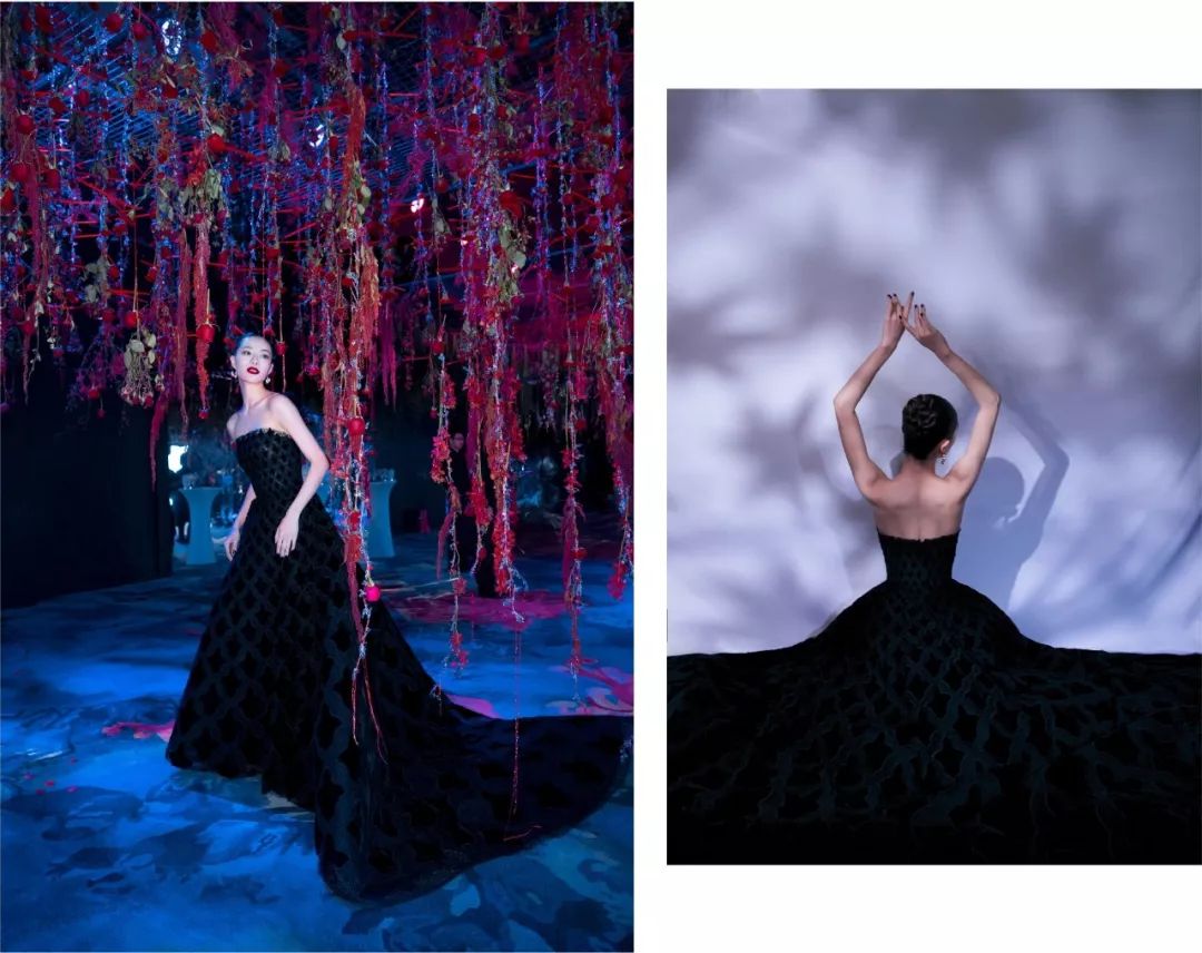 这次亮相红毯的她,选择了一袭黑色丝绒礼裙搭配上明艳动人的红唇妆容,自信优雅。她的一字肩、蝴蝶背、匀称的手臂,身材比例不要太好。同时再次强调:红毯非常适合黑裙配红唇,所以今年年会,大家应该知道怎么穿才能抢镜了吧。
