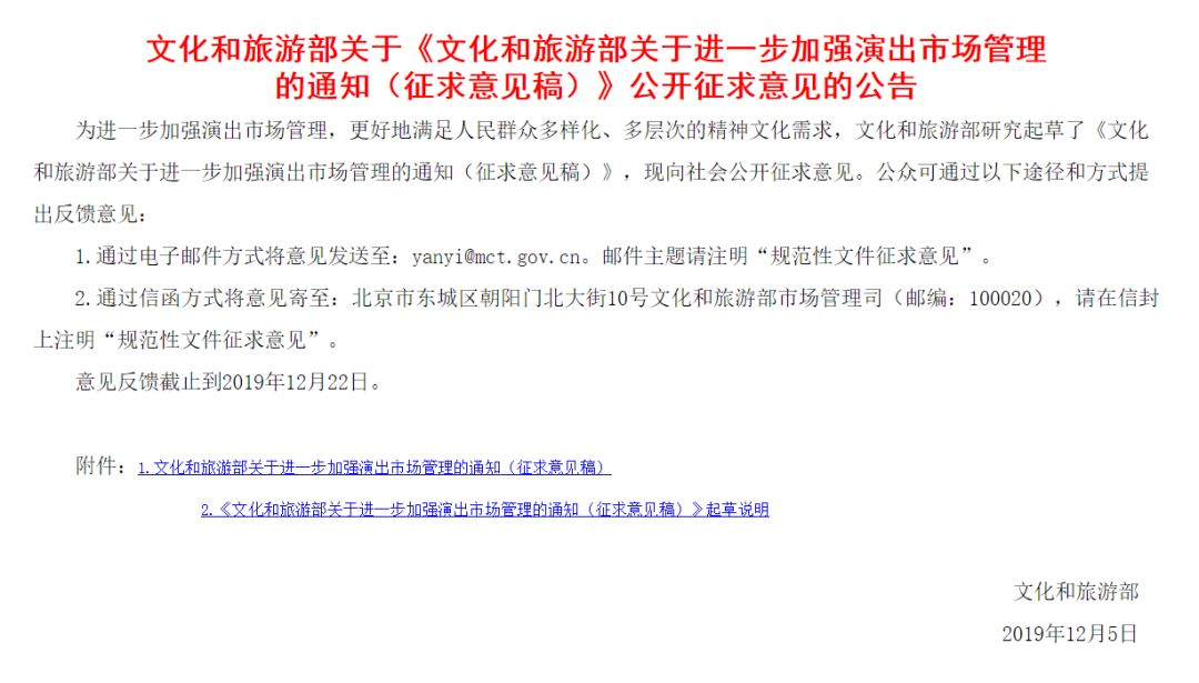 近日,文化和旅游部发布了《文化和旅游部关于进一步加强演出市场管理的通知》。指出要加强票源流向监管,充分运用信息网络技术,探索建立全国统一的演出票务监管服务平台。据了解,票务市场“黄牛”炒价现象严重,一张原价千元的热门歌手演出被炒到上万元的情况并不罕见。此项举措将推动票仓公开透明,促进演出票务的公平交易。同时,要求加强对说唱、沉浸式演出、脱口秀、相声等节目的内容审核和现场监管。此前,人民日报曾对张云雷调侃京剧表演艺术家事件表示,“学艺先学德,做戏先做人”。