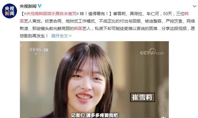 原标题:央视揭韩国娱乐圈“自杀魔咒”,韩国艺人的苦我们真的