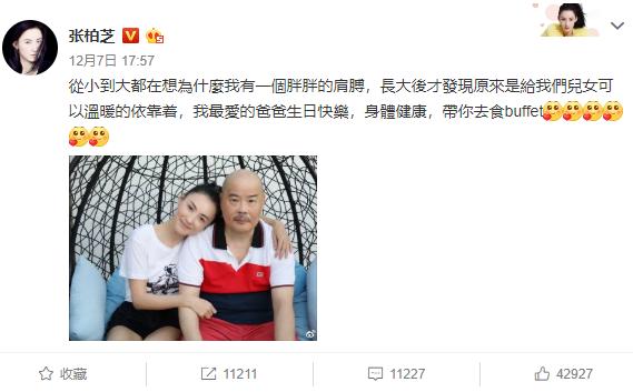 原标题:张柏芝给老父亲庆生,当年就是父亲拆散了她的