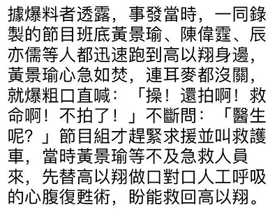 原标题:台媒曝黄景瑜曾为昏迷高以翔做人工呼吸,悲痛好友抢救不