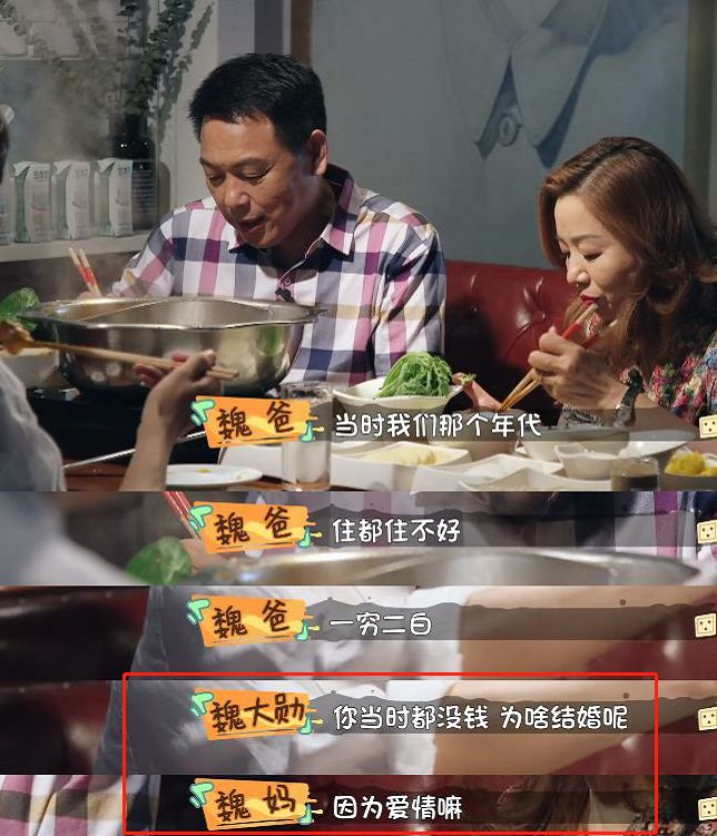 而且,魏大勋爸妈当年是从一穷二白走过来的,坚定的选择彼此只是因为爱。如果魏大勋真的找到了自己心爱的另一半,疼爱儿子的父母又怎么忍心反对呢。