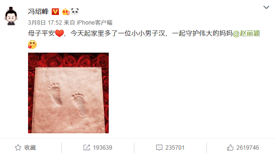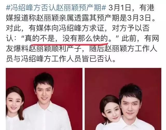 一月份的时候两人官宣怀孕,但3月1号被问预产期是否在3月3日的时候,冯绍峰方还否认,并且说,没有那么快。然后7天之后,冯绍峰就官宣产子了。
