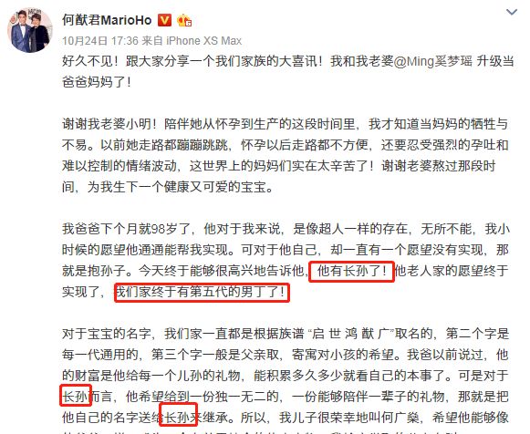 而何猷君公布生子当天所发的长文以及文中多次提及“长孙”这个充满旧时代豪门意味的词语,让网友纷纷吐槽,受过现代高等教育的学霸何猷君身上仍然摆脱不了旧时代豪门的糟粕,也让吃瓜群众深切感受了一番旧时代豪门的明争暗斗,可谓是难得一见的名场面。