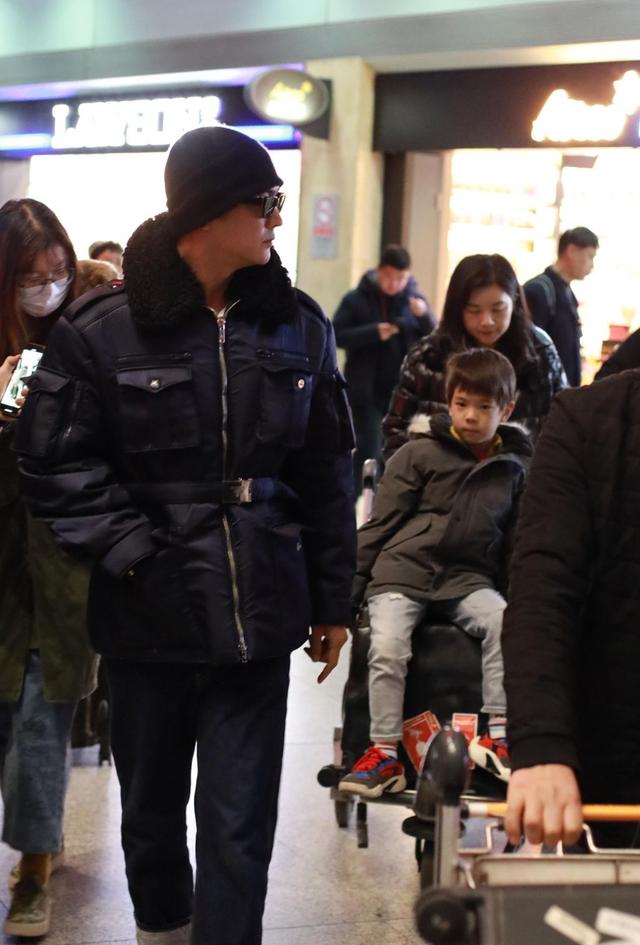 原标题:杜江父子度假归来现身机场,嗯哼坐在行李箱上不吵不闹过分