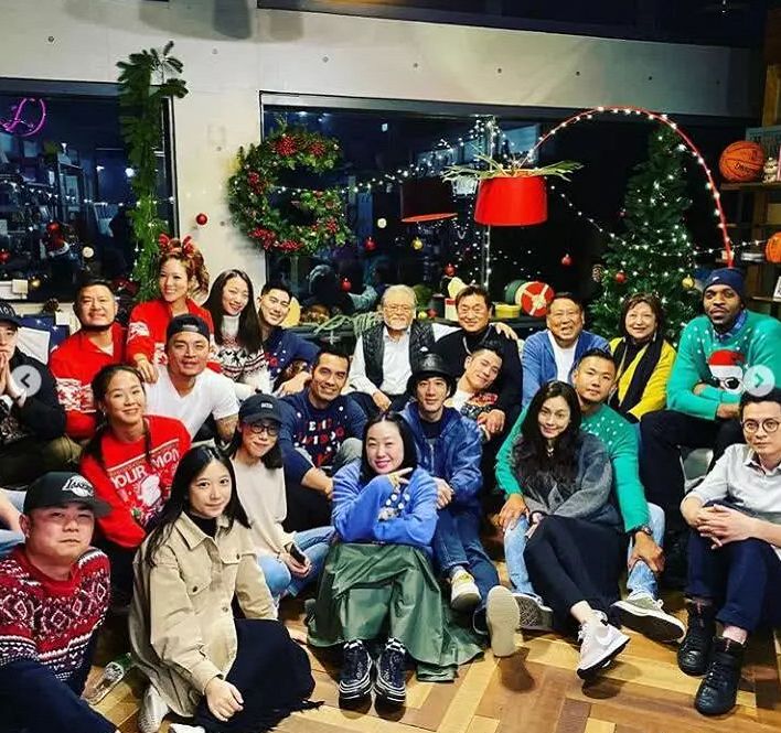 派对现场布置得很有新年氛围,大家还用绿植制作了一个大大的G,众人合照时还一起将手指向了G字。