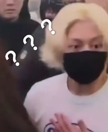 突然被如此对待的金希澈一脸震惊的望着警卫,瞪大的眼睛中充满着疑问,宽大的口罩也遮不住他的委屈。随后金希澈双手放在胸前似是在自证身份,私下的金希澈虽然一头金发仍然耀眼,但是打扮得很是低调,与一般路人无异。简单的白T恤还戴上了一个黑口罩,难怪保镖会将金希澈认作是林允儿的粉丝。