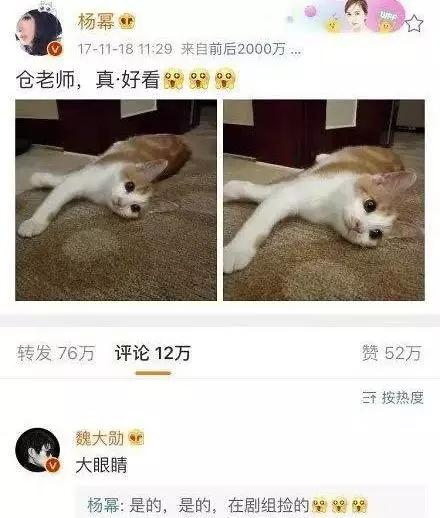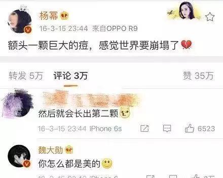 魏大勋顺利进入演艺圈以后,也不止一次地在公开场合表示对杨幂的好感,无论杨幂在微博发什么,魏大勋总是在评论里花式夸。