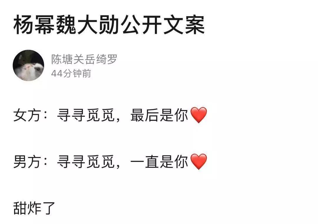 看到这些,真的南风都差点儿成了他俩CP粉,准备去给“寻寻觅觅”超话打榜了,额,话说杨幂不会真的因为和魏大勋谈恋爱就洗白了吧?