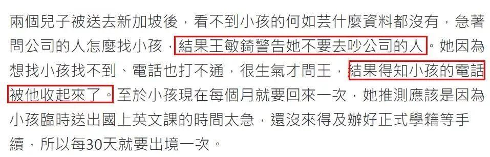 原计划是明年1月份出国陪伴两个儿子,但目前的情况,何如芸还是想去,但不知道王敏锜会不会让她见孩子。