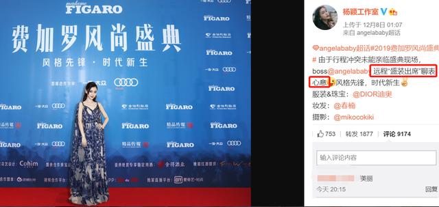 说到时尚,当晚没空出席的Angelababy显然更时尚,她虽然没到场,但为了聊表心意居然愿意在酒店花几个小时化妆、换装,还让修图师将自己P到现场,这举动实在是太“前卫”、太“时尚”了。