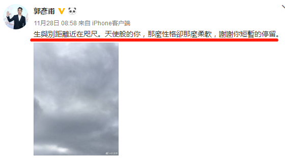 在高云翔逝世后,郭彦甫还在微博发表了一条动态,去悼念高以翔,想不到自己也悄悄的来到了他的身旁。但他是幸运的,因为身边有交命的朋友和专业的医师。