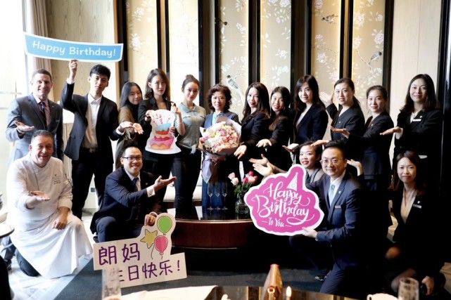 庆生现场上,还有不少其他人,穿着黑色西服,排成一字型展开站着,场面十分壮观。吉娜和郎朗妈妈站在众人中间,占据C位,对着镜头巧笑嫣然。现场上还有不少字幕牌子,写着“生日快乐、朗妈生日快乐”等,喜庆十足,不过没有看到郎朗的身影,想必是在忙吧。