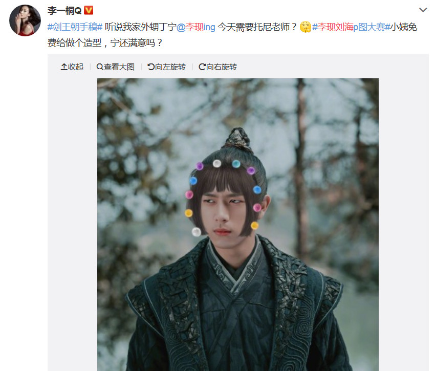 在剧中饰演元武帝的刘奕君也加入到P图大军,给李现P了哪吒头,只不过他的手艺相比李一桐就要粗糙得多了,线条很是凌乱粗犷。一张剧照被网友玩出了几百种花样,小扒很想求李现看到这些图片时的心理阴影面积。