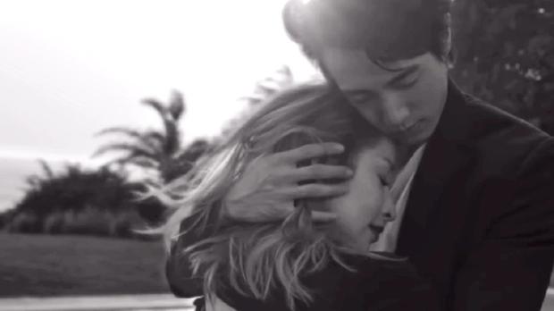 MV中还有亲吻的画面,两人捧着头亲吻,满屏都是狗粮。