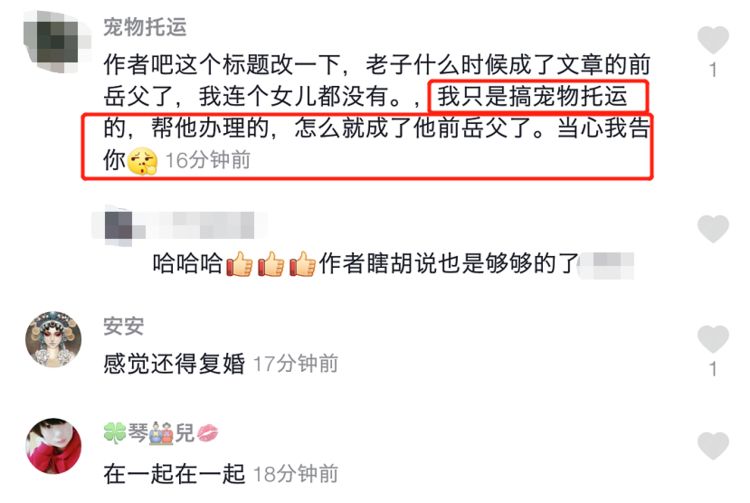 不过视频中的男子全程没有露脸,他真的是文章前岳父吗?很快,这名男子本人看到了这条视频,回复视频发布者表示自己就是视频中的人,但自己只是做宠物托运的,帮文章办理而已,不是文章的前岳父。还警告作者“当心我告你”。