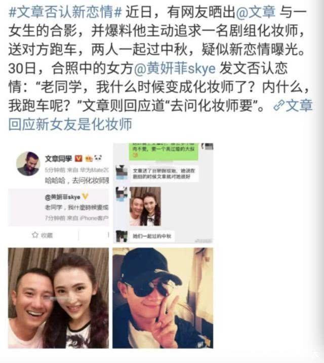 在此期间,也有传闻称文章恋上新的女友,其一是他的化妆师,不过很快被文章否认。此后又有美女深夜接机文章,媒体称两人在车内接吻,但很快文章也进行了辟谣,表示就普通朋友而已,没有接吻,对方只是在帮自己系安全带。