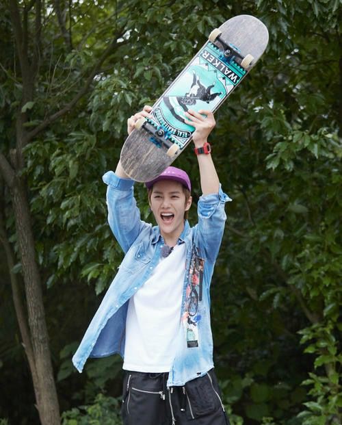 同时,他也是酷秀的追风滑板少年,不仅滑板玩的溜,还自创了个滑板主题潮牌M -skateboard!