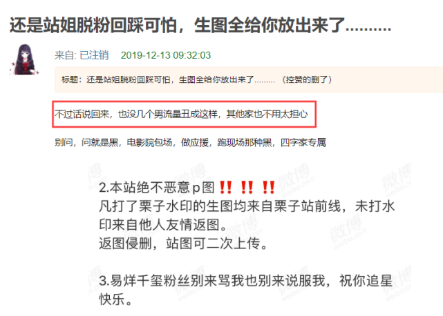 原标题:易烊千玺站姐脱粉回踩,晒大量生图唾骂:没几个流量男星丑成这