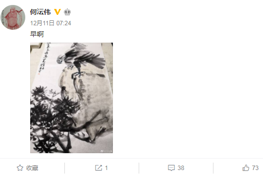 这段时间,何沄伟由于没事干,则是每天晒自己的一幅画,持续了多日。而何沄伟每次晒画,都遭到了很多网友的吐槽,不少网友批其不务正业,也有网友吐槽其混得是非常潦倒。