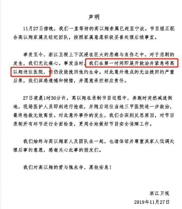 而且这位现场人员还反驳了浙江卫视在声明中一倒下就及时救治的说法,称不存在,该节目摄像在高以翔倒地后依旧还在拍摄。