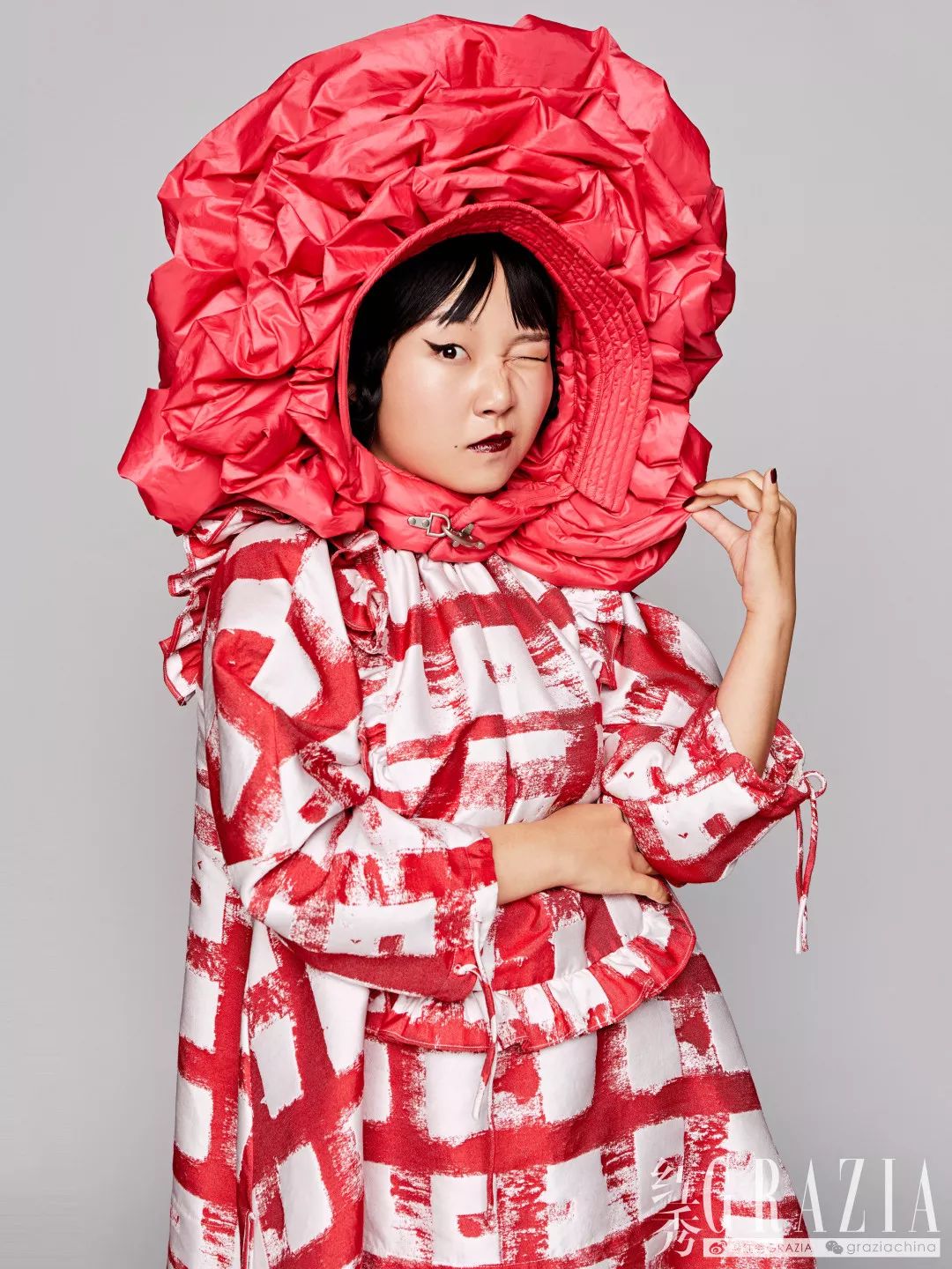 羽绒花状头饰/CHENPENG 红色格纹连衣裙/SHUSHU/TONG