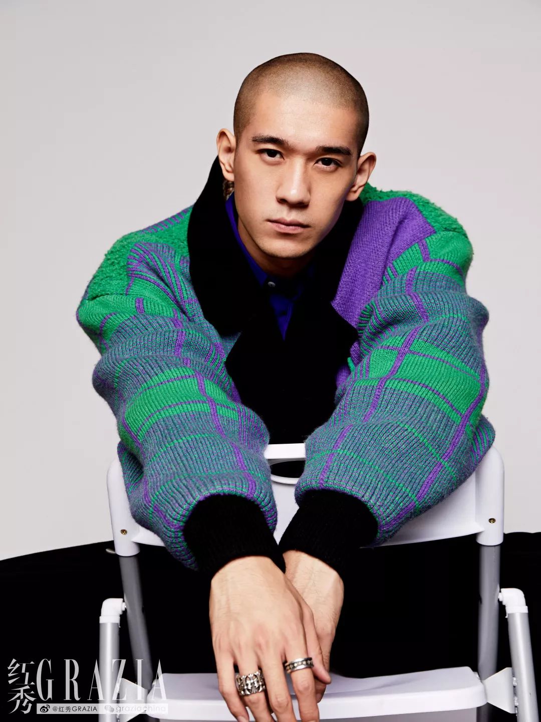 格纹针织外套/motoguo 紫色衬衣/ dunhill
