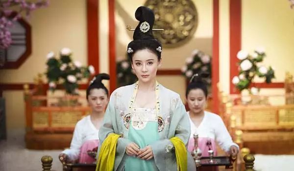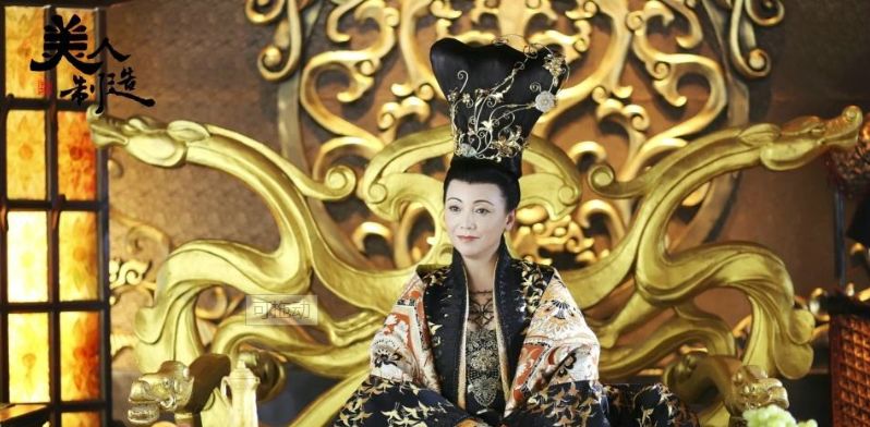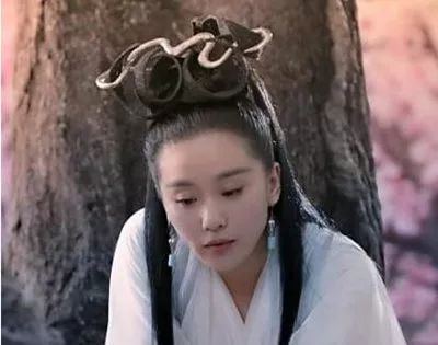 到了后期,刘晓庆扮演武媚娘时,一身白衣换成了黑红色调,倒是符合武媚娘的霸气侧漏。可这依然迷惑的头饰,难道是山羊精蜕变成了田螺精吗?