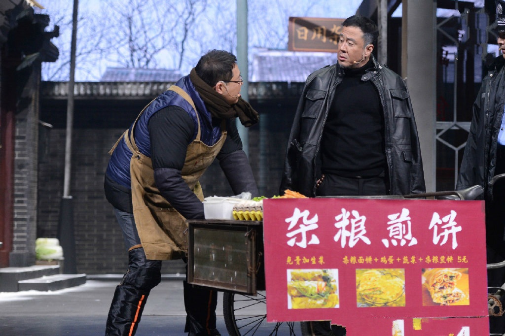 再说第三名的《老炮儿》。原版的《老炮儿》电影不错,主要不错在“挂人物”上。原版电影当中,六爷这个人物立得住,像北京的胡同老炮儿。为了立住这个人物,电影当中拍摄了不少的生活细节,尤其是六爷打抱不平的细节。不少细节,都在电影成片之后删除了,影迷只能从网上看到某些删减掉的片段。这都是典型的创作技法上的挂人物,让角色有地气,像真的。《巅峰对决》的舞台上,这个“老炮儿”也试图挂人物,让人物像真的,所以搞了煎饼果子摊位的开场。