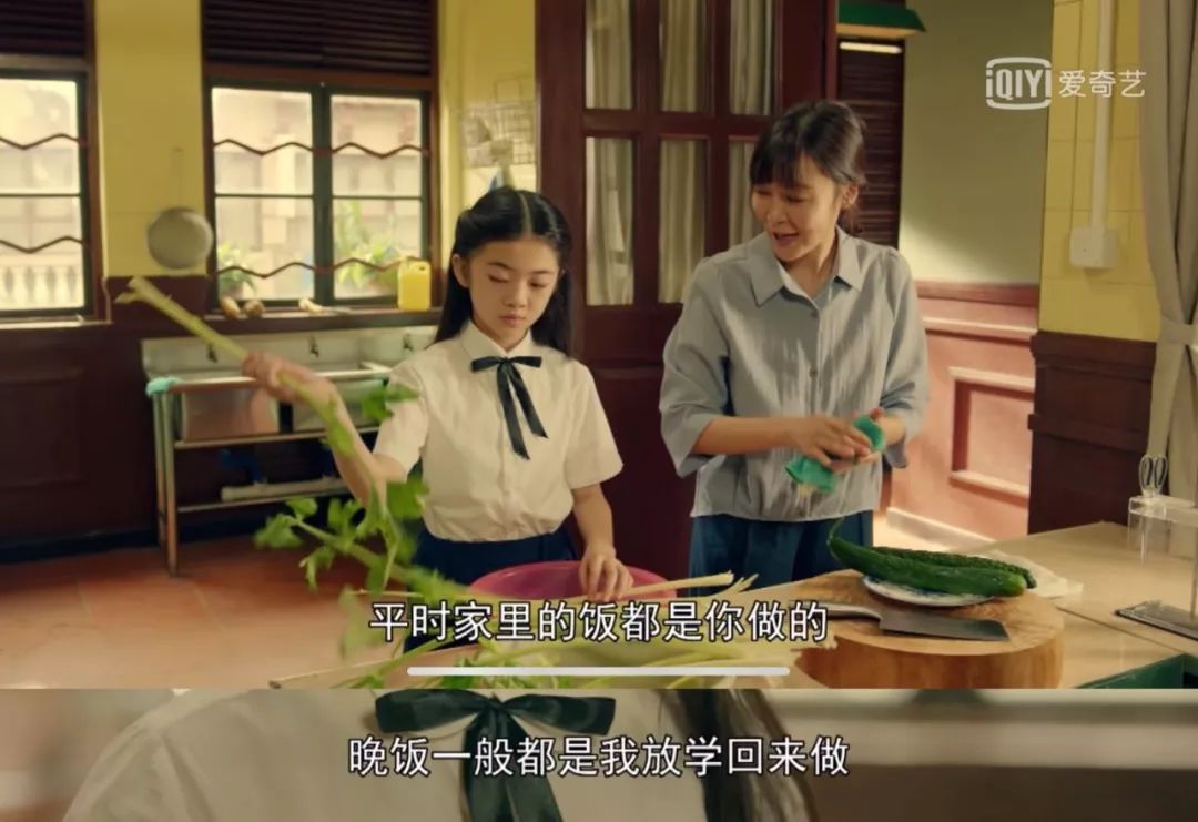董洁饰演的角色既要上学读书,回到家里她还要买菜做饭,小小年纪就异常懂事。