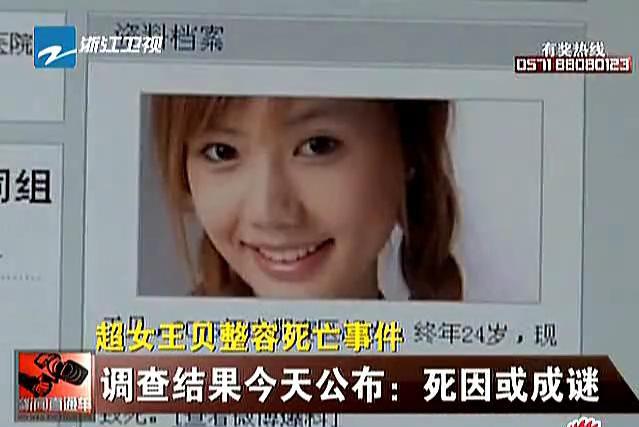 2010年11月,王贝在整形医院做整形手术,总共做了颧骨颧弓降低术、埋线双眼皮等6项手术,没想到出了意外,送到医院抢救30多个小时,最终抢救无效死亡。