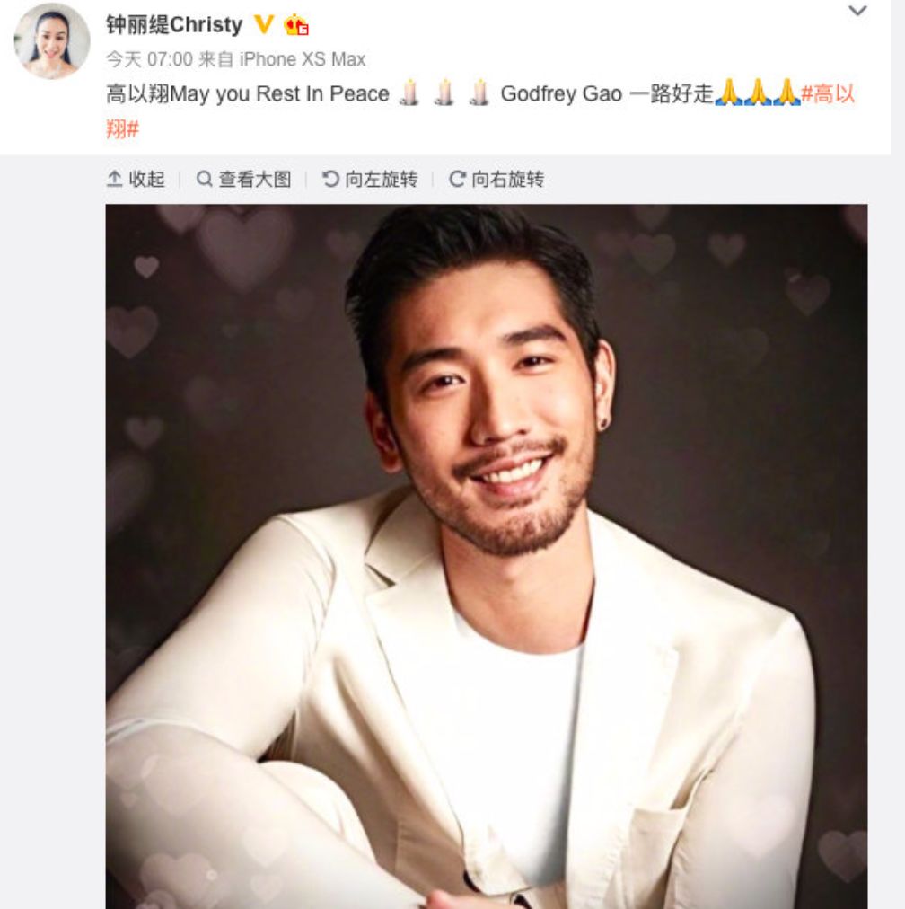 很久没有现身的女神钟丽缇,这次也带上了#高以翔#话题,来送别他。此前,钟丽缇和高以翔并没有交集,如今发声让人有些意外,可能是女神对鲜活生命的惋惜吧。