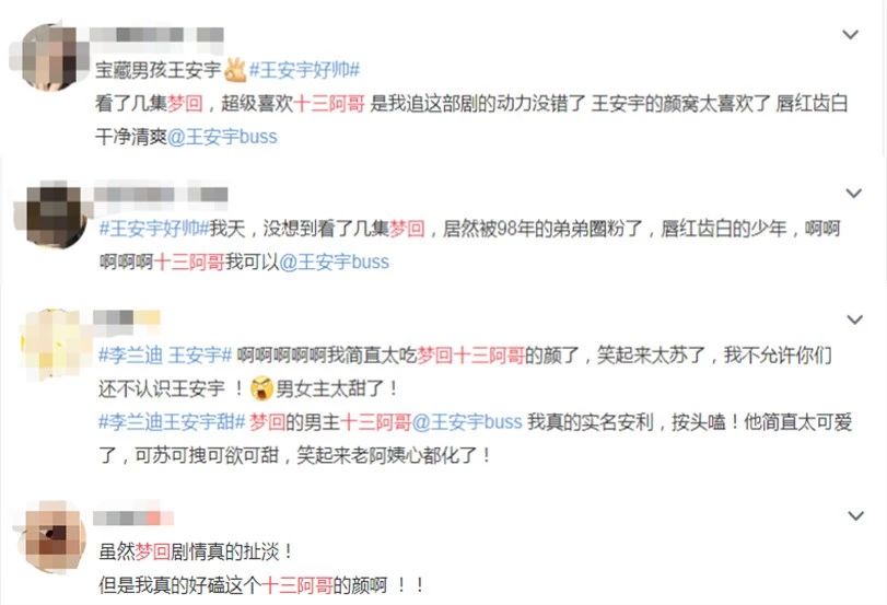 近日,电视剧《梦回》开播了,除了女主角李兰迪稍有名气以外,清一色新人的演员搭配让很多观众在开播前并不看好这部剧,然而没想到剧开播后,观众却纷纷对男主角“真香”了,一条“王安宇好帅”的热搜猝不及防的出现在榜单上。