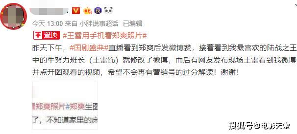 而王雷点开的正是这条博文的照片,因此也不存在一些网友所说的王雷是在专门搜郑爽之类的话,发文网友也出来说明了,表示当时直播看到郑爽之后发了微博,接着看到了自己喜欢的王雷就修改了微博,因此两人之间的强联系也是没有必要。