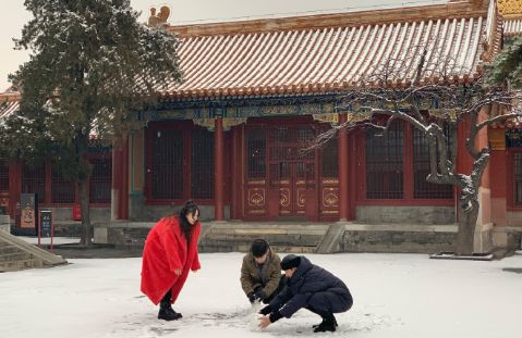 原标题:邓伦baby一起在故宫玩雪,开心玩耍超有爱,组成最佳玩雪