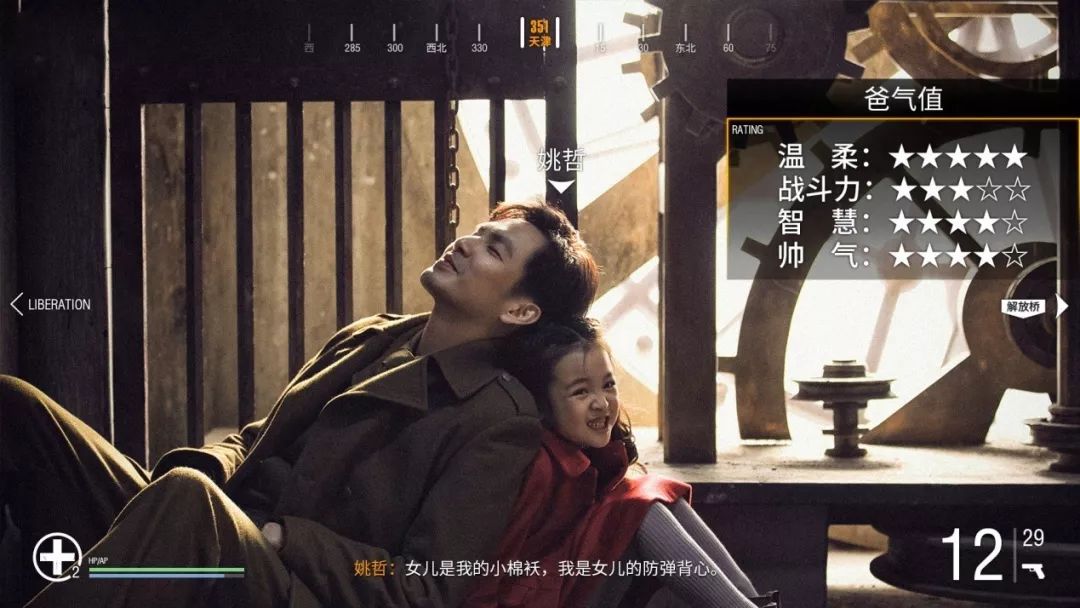 戏中他是妥妥的“护女狂魔”,视频中他不顾一切地迎着炮火奔向女儿,一句震人肺腑的“小兰”,可谓老爸力MAX!