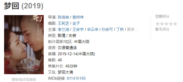 在《庆余年》之后上线的是《梦回》,12.14号才在腾讯卫视首播。