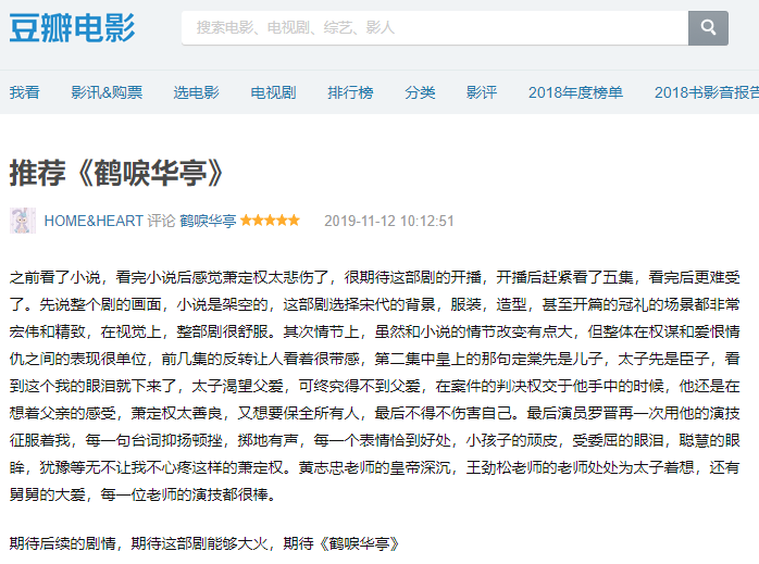 但口碑却一般般,目前豆瓣评分才6.6,赶不上《鹤唳华亭》。