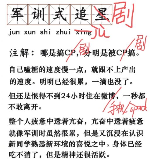 改编自【军训式追星】,意思就是这哪是追剧,分明就是被剧追 。