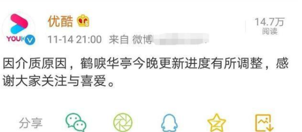一部《鹤唳华亭》,大男主剧,11.12号在优酷独播。