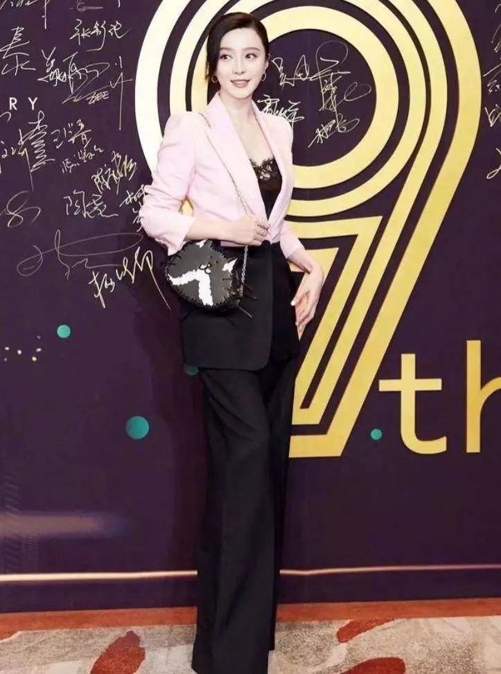 而出席某活动时,范冰冰更是一改之前类似“龙袍加身”的高调红毯造型,选择了走西装飒气的低调路线。外套选择粉色加黑色的组合,给人一种“女霸总”却不失柔和的感觉,一个小猫咪的包包,甚至还让她整个人有了几分可爱,谁能想到她如今已经快接近40岁了呢?