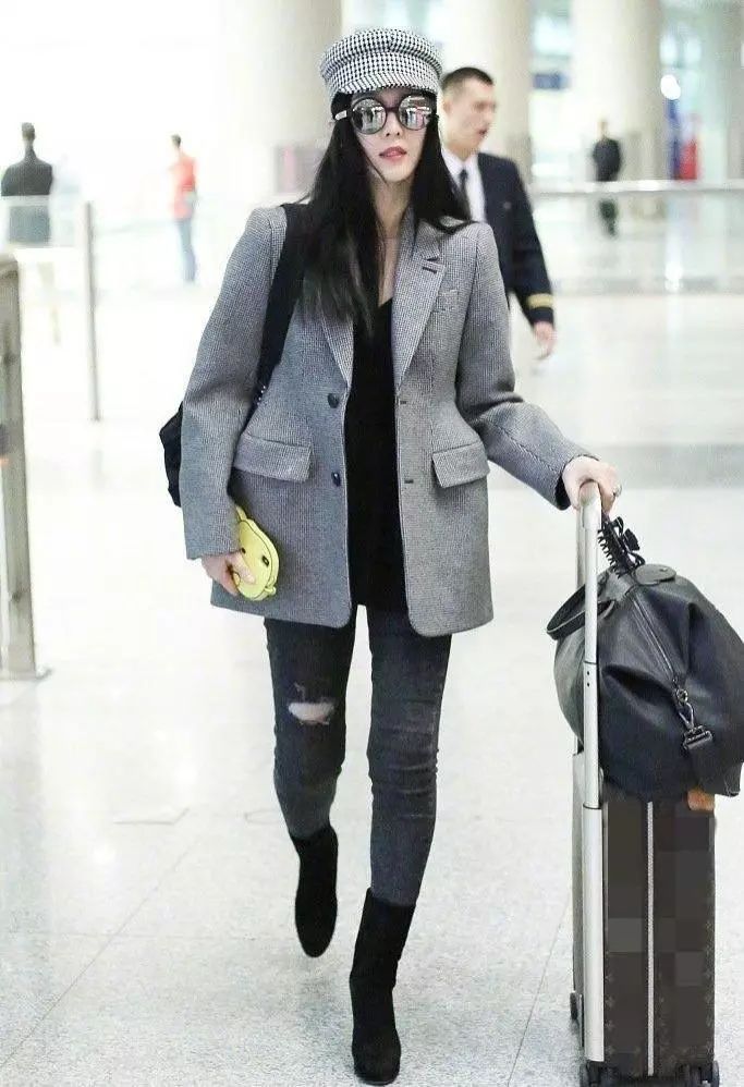 在机场里被拍到的范冰冰也是低调十足,灰色的西装配上同色系的格子帽子,身上唯一的亮色大概就是手里的手机壳了吧。不过最惹眼的还是她突然瘦下来的身材,蚂蚁腰加上纤细美腿,不得不让人想到她是不是最近压力过大这才猛的减了体重。