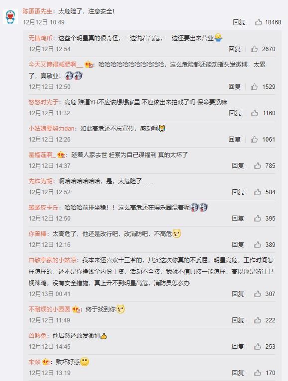 也有一些明星却借此事件为演员行业发声,比如宋佳就呼吁同行爱护自己:“高危职业,同行们热爱的同时请保护自己,爱护自己。”