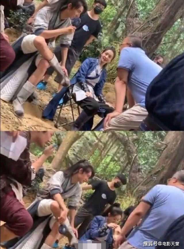 照片中赵丽颖和王一博坐在小马扎上开心地聊着天,对面似是导演的人在给两人讲戏,三人还时不时的交流两句,整个场面看起来十分和谐,充满了愉悦的气息。由于天气太热,王一博也将裤腿卷了起来,露出了白皙纤细的小腿,慕了、慕了。