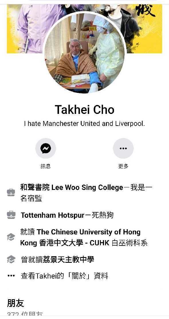 另有网友发布的“Takhei Cho”脸书简介截图也显示其就读于香港中文大学。↓