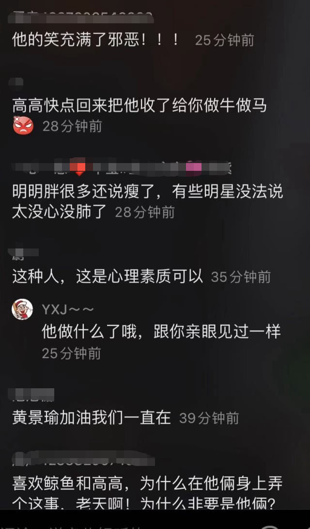 有网友看到随即留言“他一点都不内疚,真渣”“高高快点回来收了他给你做牛做马”……似乎对黄景瑜很不满。