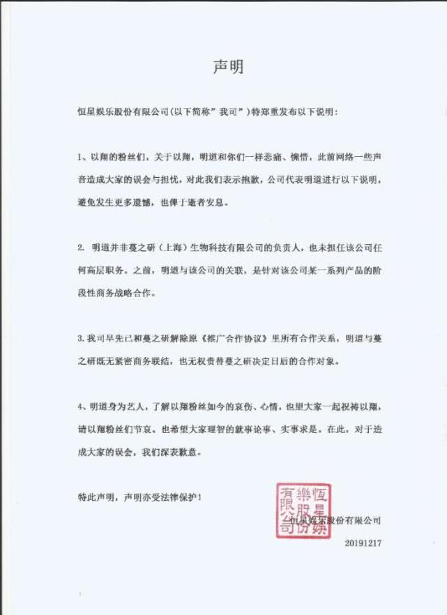 然而,近日某品牌宣布赞助浙江卫视后年的跨年晚会,网友“挖坟”发现明道与品牌有关,甚至有人说明道就是品牌创始人,谴责明道“吸高以翔的血”。
