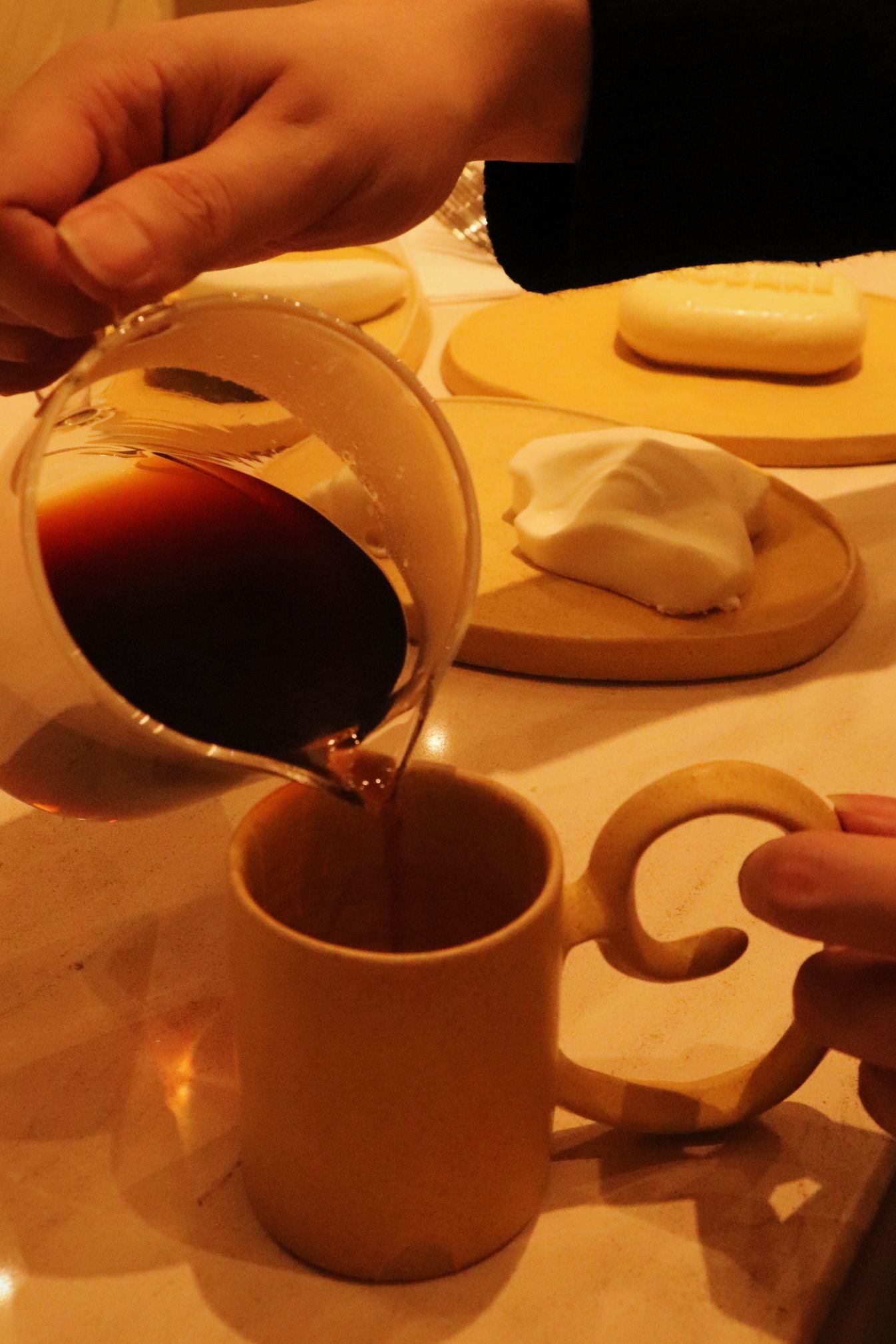 另外,如果你觉得只吃甜品略显单调,还可以选择店内的饮品搭配。京蜜和小伙伴在店内就餐时,分别选择了埃塞俄比亚耶加雪菲和红莓汽水。